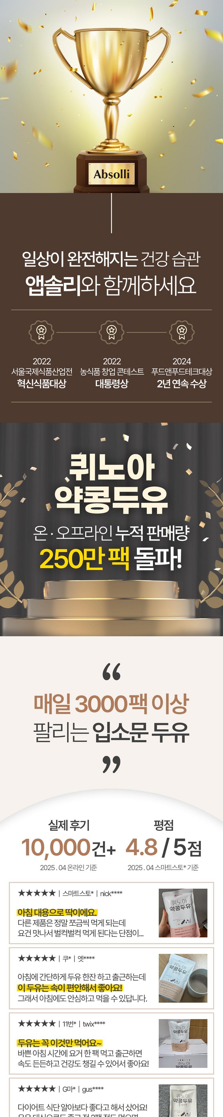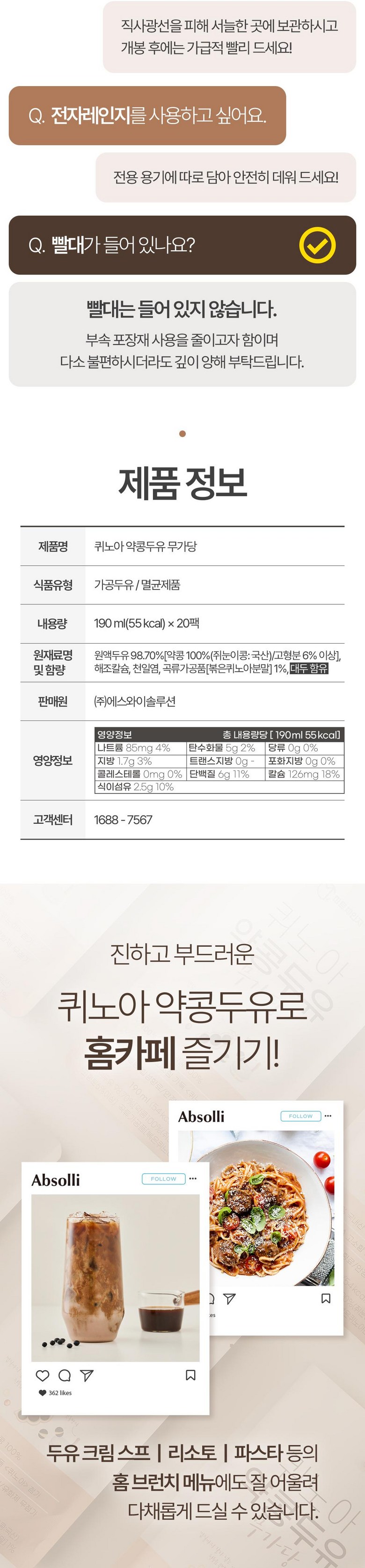 | 제품명 | 앱솔리 퀴노아약콩두유 무가당 | 식품의 유형 | 가공두유/멸균제품 |