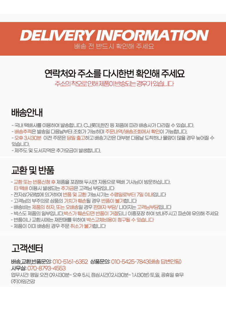 - ㆍ모니터 해상도의 차이로 인해 색상이나 이미지가 실제와 달라, 고객이 단순 변심으로 교환/반품을 무료로 요청하는 경우