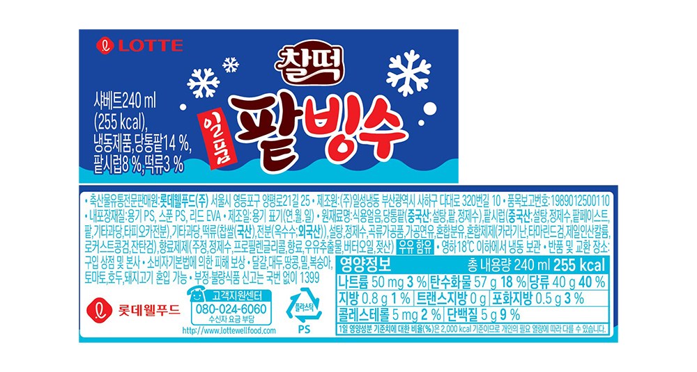 | 제품명 | 찰떡일품팥빙수 | 식품의 유형 | 컨텐츠 참조 |