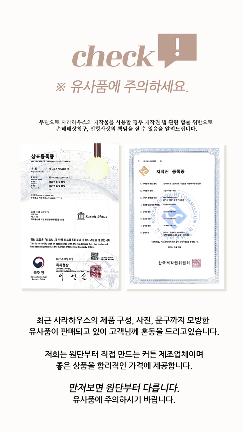 | 제조자(수입자) | 사라하우스 | 제조국 | 중국 |