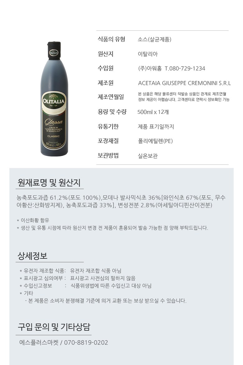 - 올리타리아 글라싸 발사믹크림 500ml x 12개