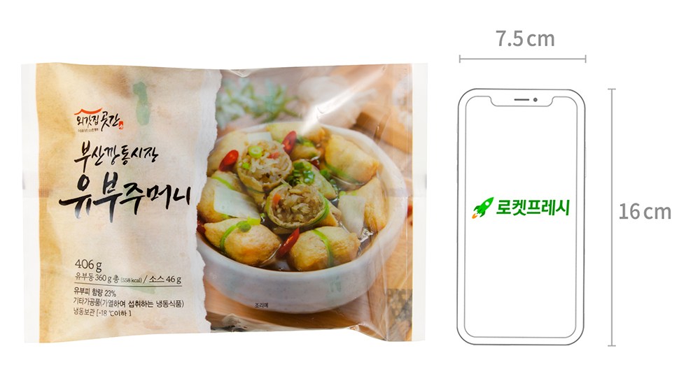뜨끈하게 끓여 먹기 좋은 유부주머니예요. 통통한 유부동안에 다채로운 재료들을 채웠지요. 담백하고 부드러운 맛이 좋고, 한 입 베어 물면 풍성한 식감을 그대로 느낄 수 있답니다. 동봉된 어묵탕소스로 간편하게 조리해 드셔보세요.
