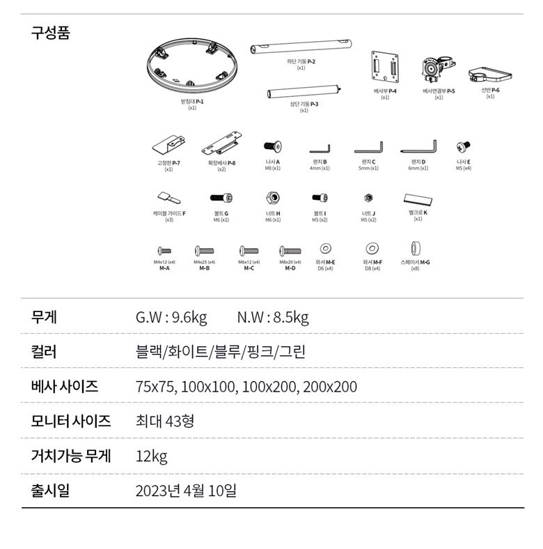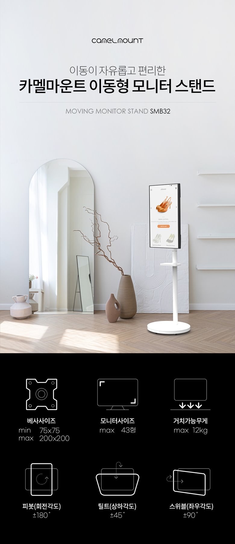 | 품명 및 모델명 | 카멜 마운트 이동식 모니터 스탠드, SMB32G | 인증/허가 사항 | 해당없음 |