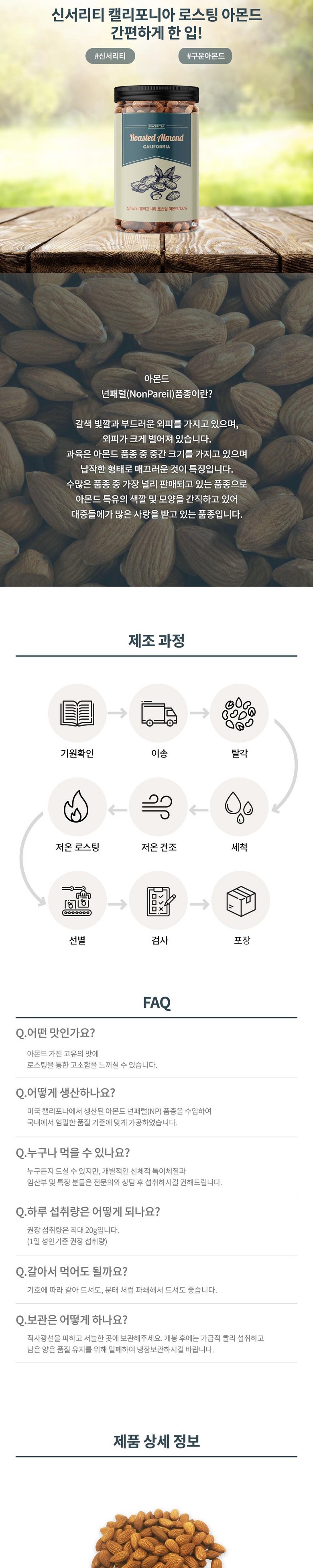 | 제품명 | 볶음아몬드 | 식품의 유형 | 땅콩,견과류 가공품 |