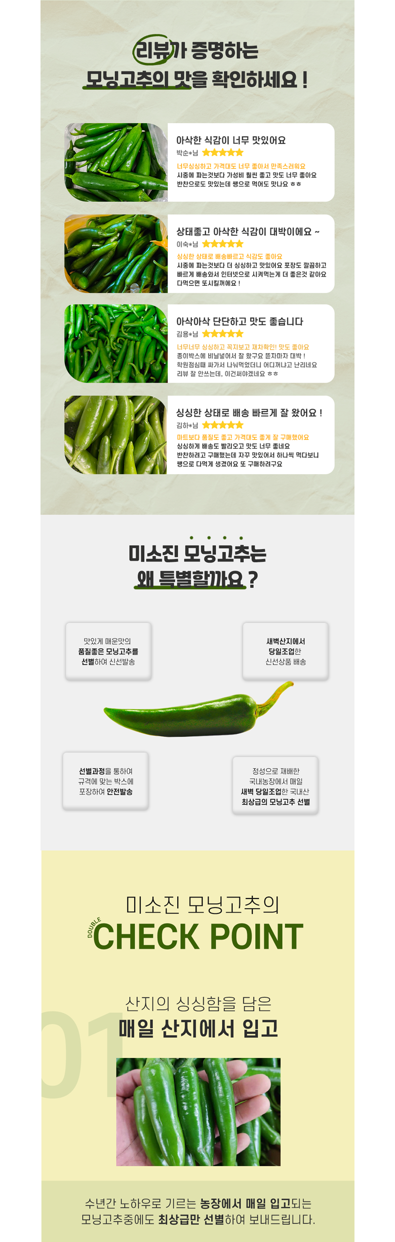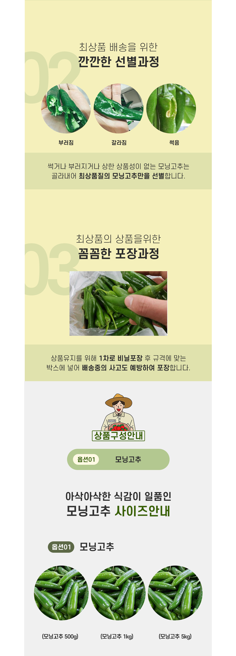 | 품목 또는 명칭 | 모닝고추 | 포장단위별 내용물의 용량(중량),수량,크기 | 모닝고추500g,1kg,5kg |
