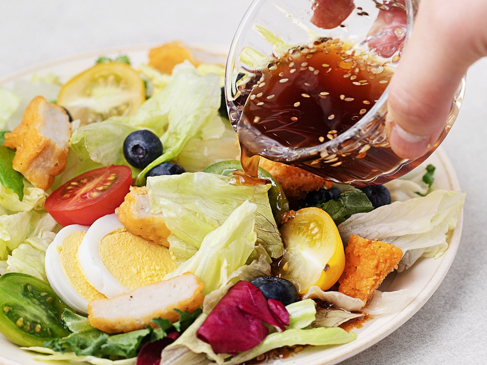 고소한 볶음참깨를 더한 오리엔탈소스예요. 새콤하고 짭조름한 감칠맛으로 입맛을 돋우지요. 두부 샐러드, 닭가슴살 샐러드 등 다양한 샐러드에 활용해도 좋고, 만두나 전 요리에 곁들일 디핑 소스로도 좋아요.
