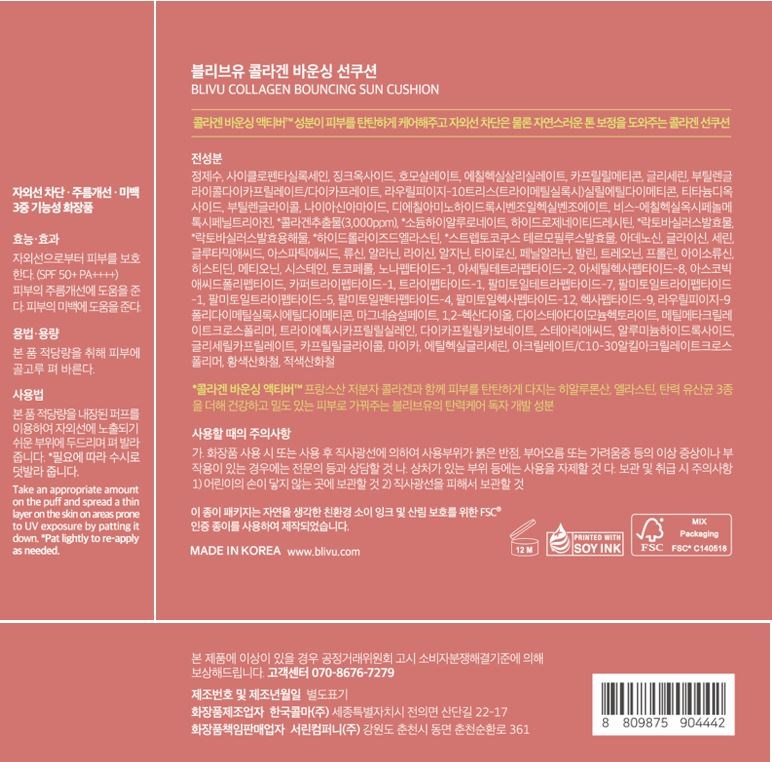 | 화장품제조업자, 화장품책임판매업자 및 맞춤형화장품판매업자 | 컨텐츠 참조 | 제조국 | 대한민국 |