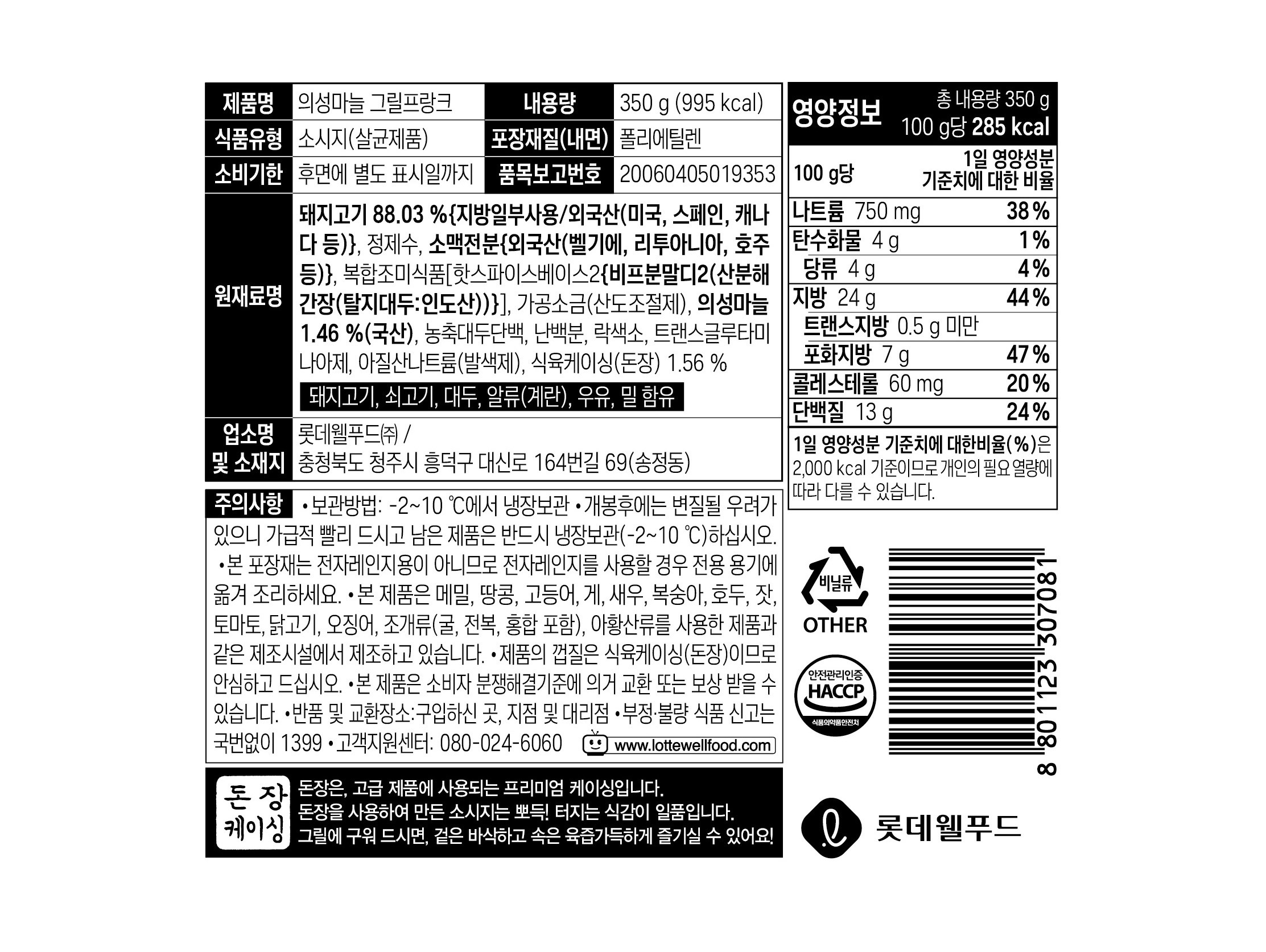 마늘햄 씨즈닝 함유