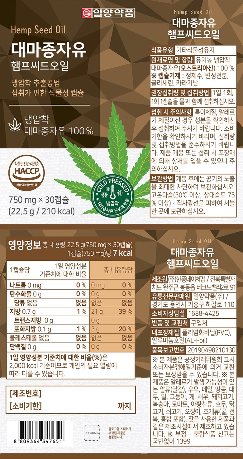 | 제품명 | 대마종자유 햄프씨드오일 | 식품의 유형 | 컨텐츠 참조 |