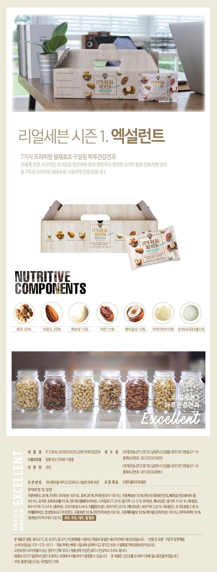 | 제품명 | IT'S REAL SEVEN EXCELLENT 하루건강견과 | 식품의 유형 | 컨텐츠 참조 |