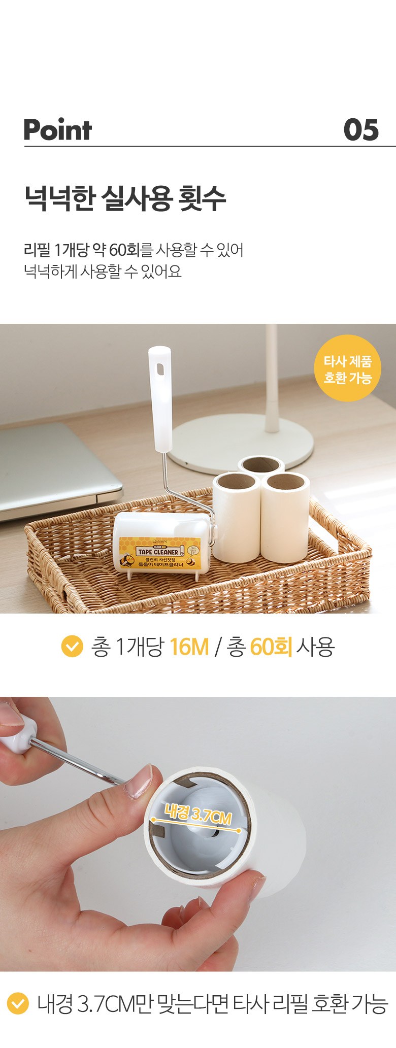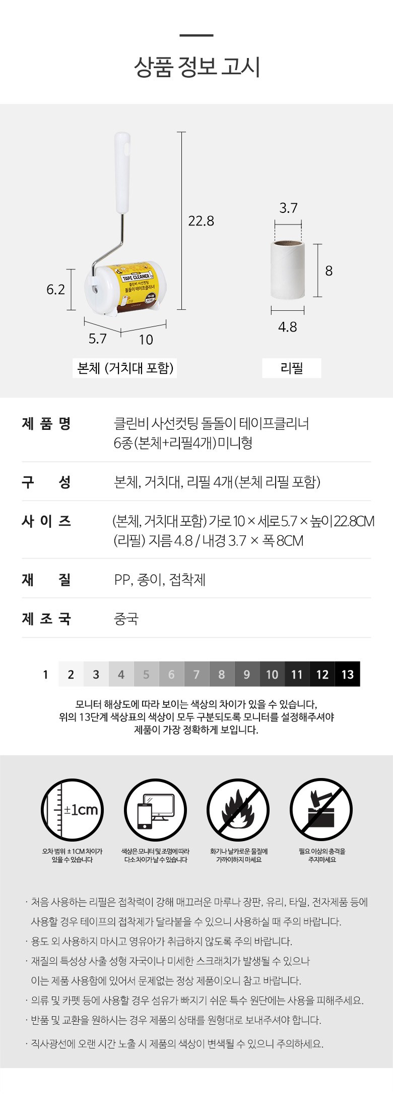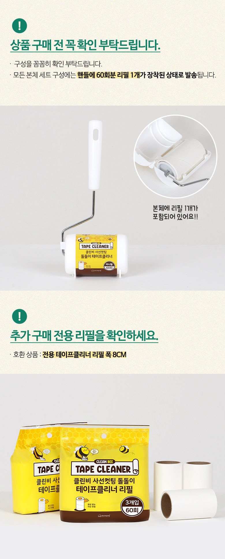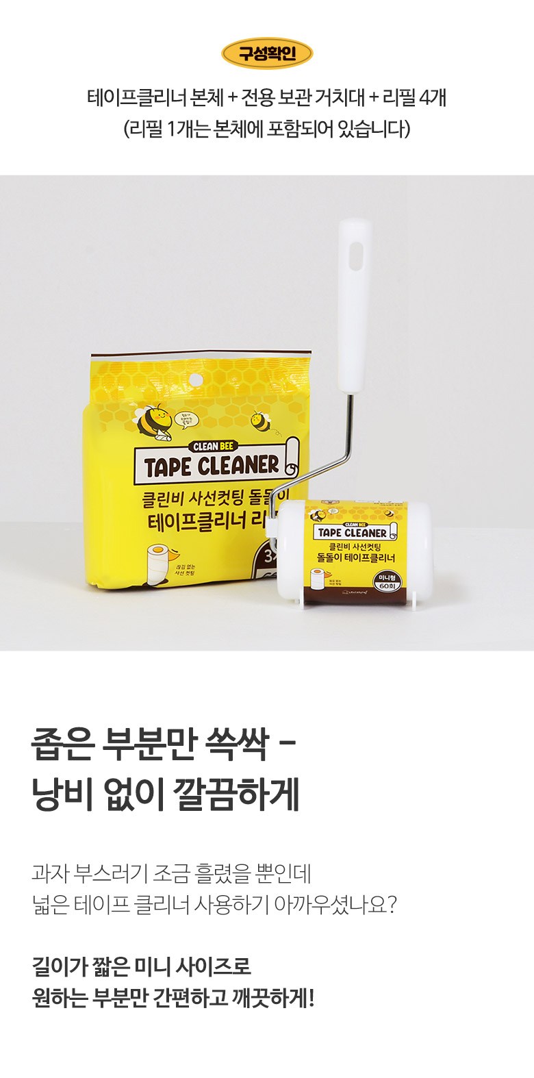 | 품명 및 모델명 | 클린비 사선컷팅 돌돌이 테이프클리너 6종(본체+리필4개)미니형 | 인증/허가 사항 | 해당없음 |