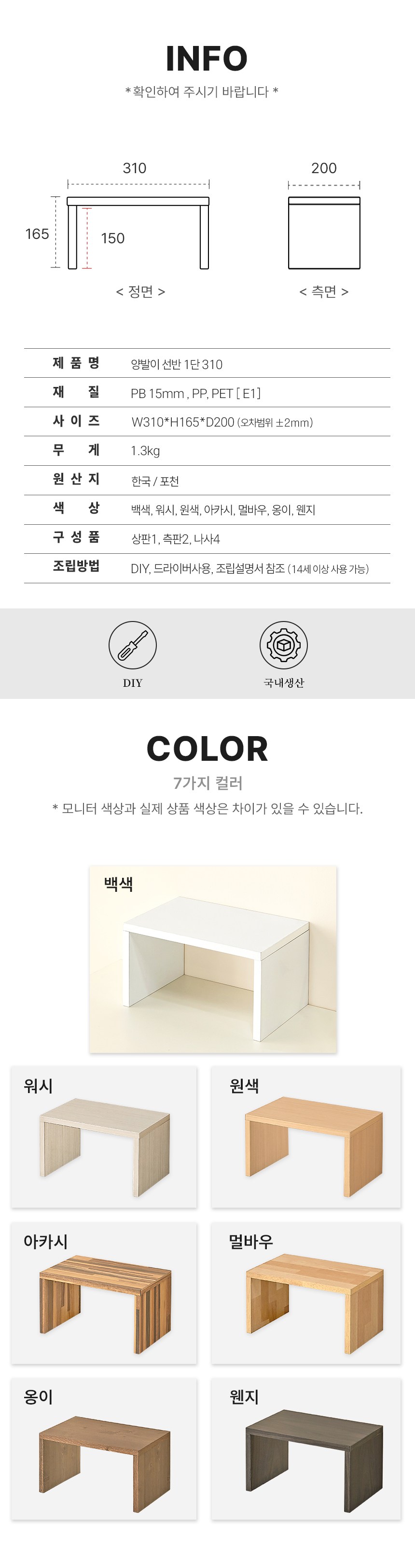 | 색상 | 컨텐츠 참조 | 구성품 | 선반3개, 나사4개 |