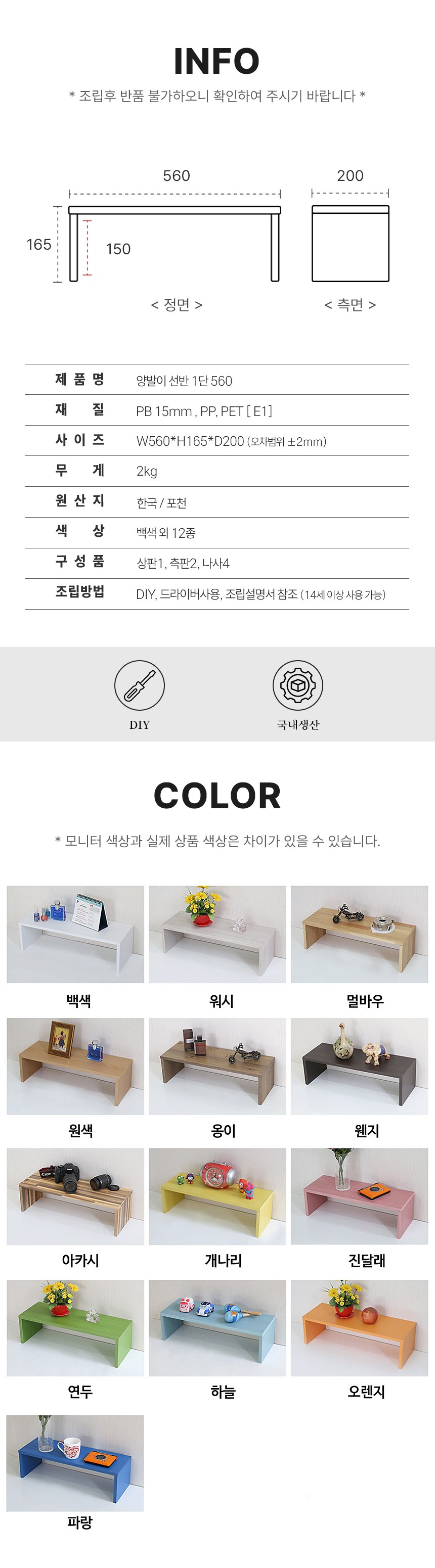 | 품명 | 양발이 선반 1단 560 | KC 인증정보 | 해당없음 |