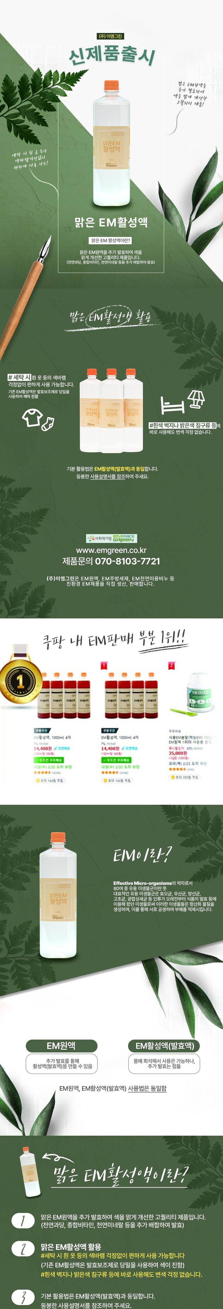 | 품명 및 모델명 | 맑은EM활성액 1000ml | 인증/허가 사항 | 상품 상세페이지 참조 |