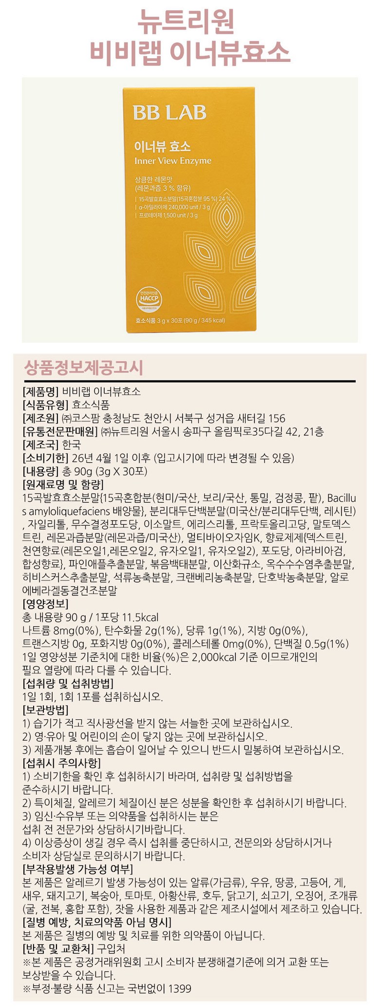| 제조연월일, 소비기한 또는 품질유지기한 | 상품 상세페이지 참조 | 세부 품목군별 표시사항 | 상품 상세페이지 참조 |