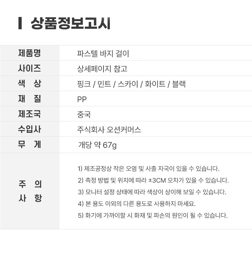 | 품명 및 모델명 | 바지걸이 | 인증/허가 사항 | 해당없음 |