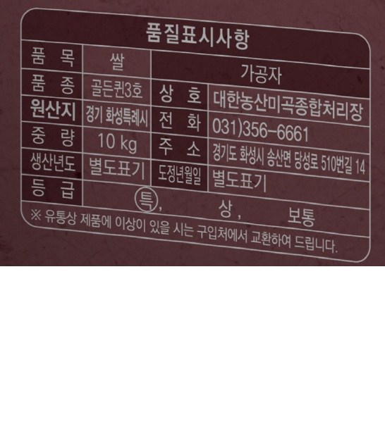| 제조연월일, 소비기한 또는 품질유지기한 | 제조년월일 : 2026년 04월 08일 이후인 제조상품 생산일자 : 2025 | 세부 품목군별 표시사항 | 농수산물 : 유전자변형(해당 없음) / 지리적 표시사항(해당 없음) |