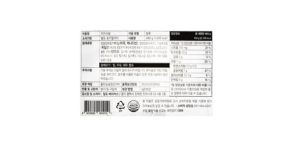 | 포장단위별 내용물의 용량(중량), 수량 | 480g | 원재료명 및 함량 | 컨텐츠 참조 |