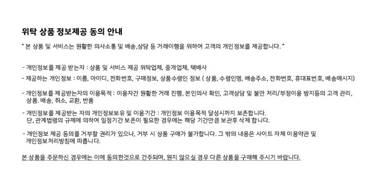 | 교환/반품 비용 (왕복비용) | 5,000원 - 단, 고객 변심의 경우에만 발생 - 도서산간 및 일부 지역 추가비용 발생 |