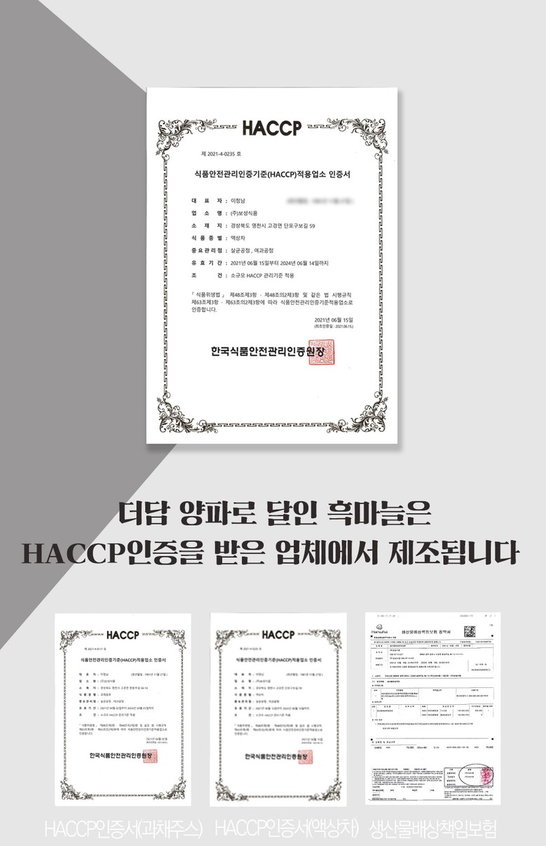 상호/대표자 | (주)보성식품 / 이정남 | 사업장 소재지 | 경상북도 영천시 고경면 창방우길 66-14 (주)보성식품 |