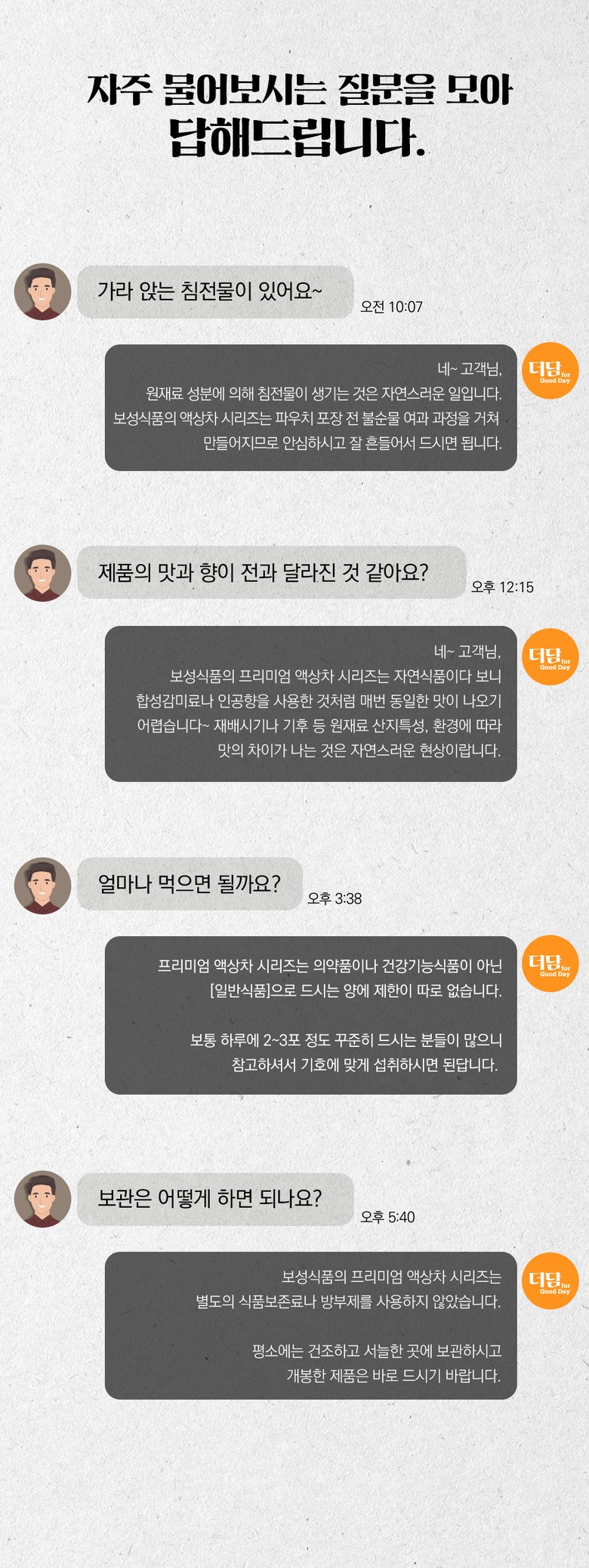 - 상품문의 및 후기게시판을 통해 취소나 환불, 반품 등은 처리되지 않습니다.