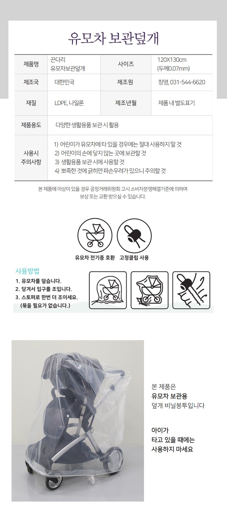 | 품명 및 모델명 | 유모차 보관 먼지 비닐 덮개 커버 | 인증/허가 사항 | 해당없음 |