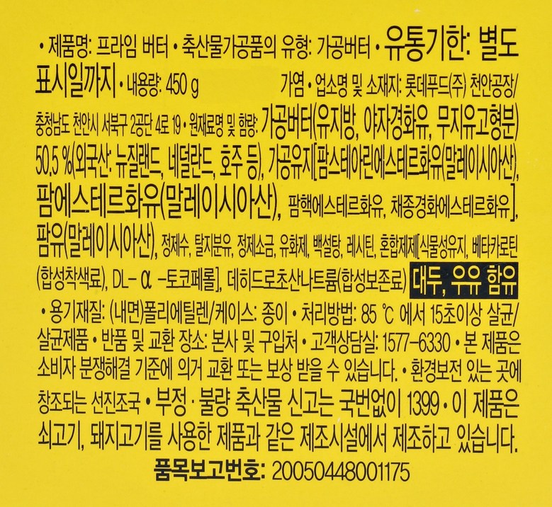 | 제품명 | 프라임버터 | 식품의 유형 | 버터 |