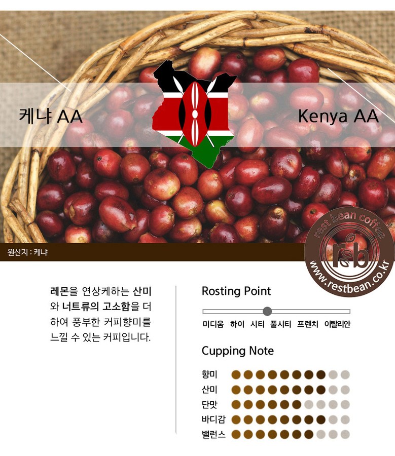 | 제품명 | 케냐 AA | 식품의 유형 | 커피원두 |