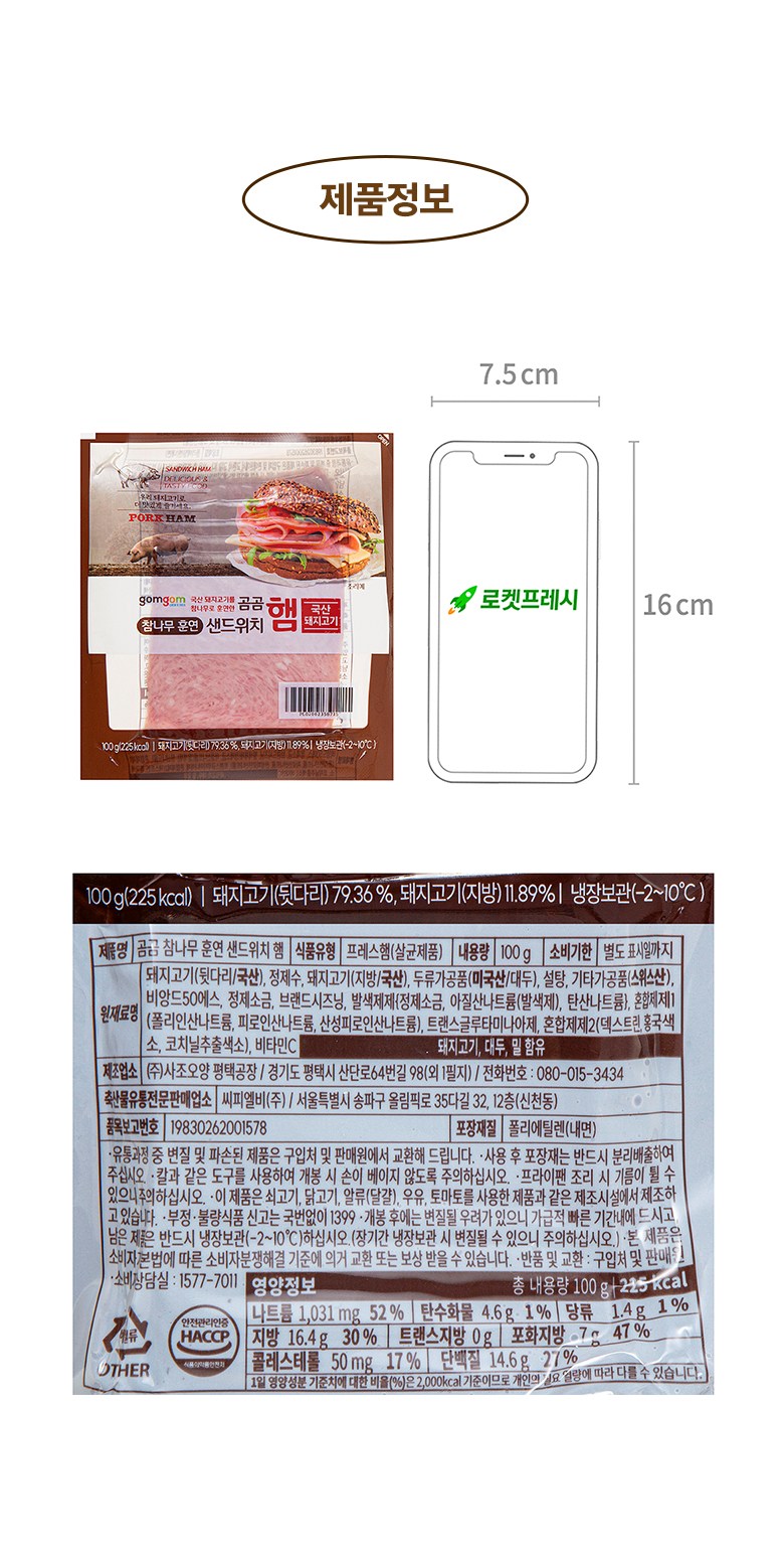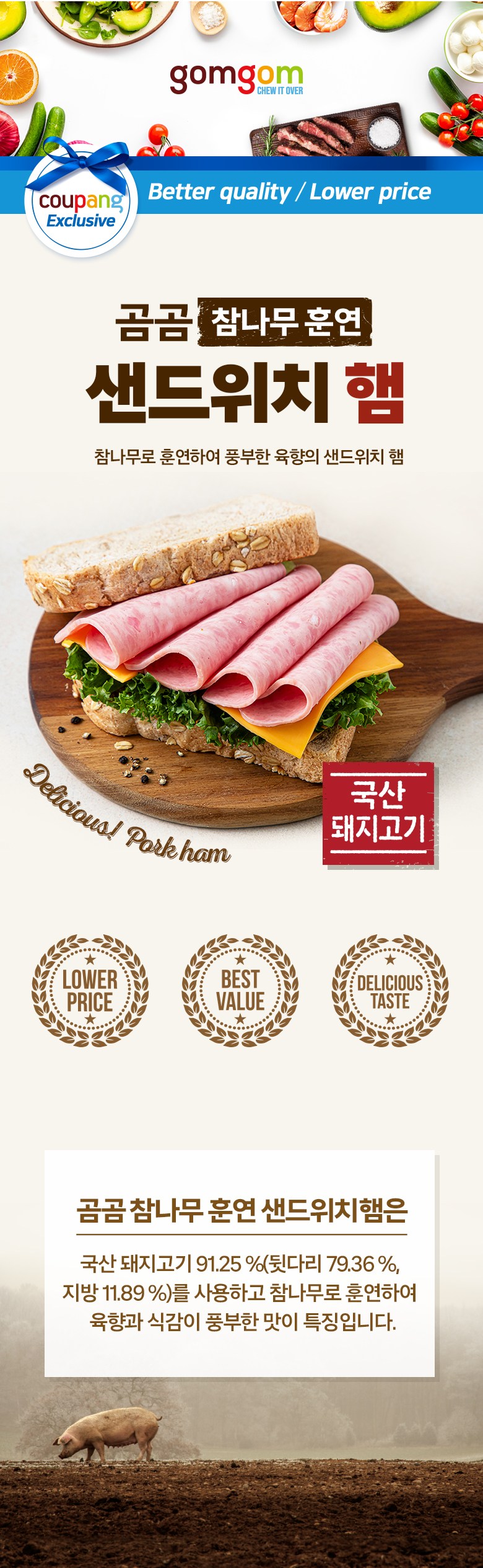 | 제품명 | 곰곰 참나무 훈연 샌드위치햄 | 식품의 유형 | 컨텐츠 참조 |