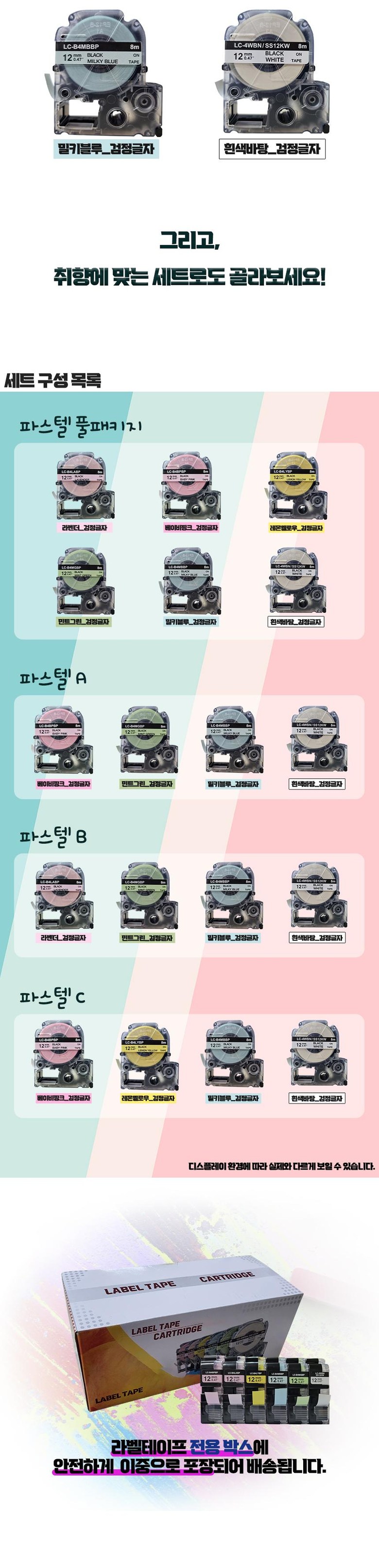 | 품명 및 모델명 | 엡손 호환 라벨테이프 / 파스텔 패키지 | 인증/허가 사항 | 해당 없음 |