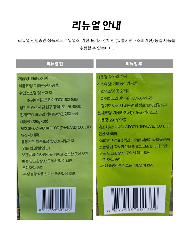 - 가공형태: 볶음/구움