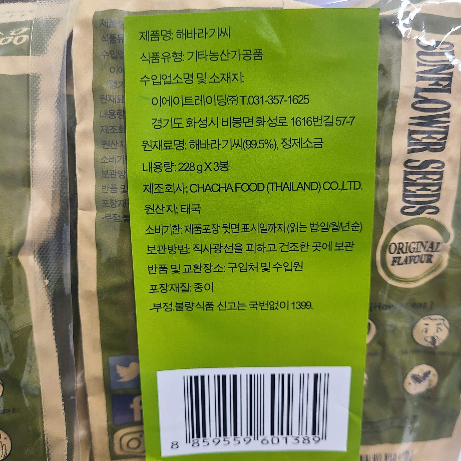 - 견과 종류: 해바라기씨