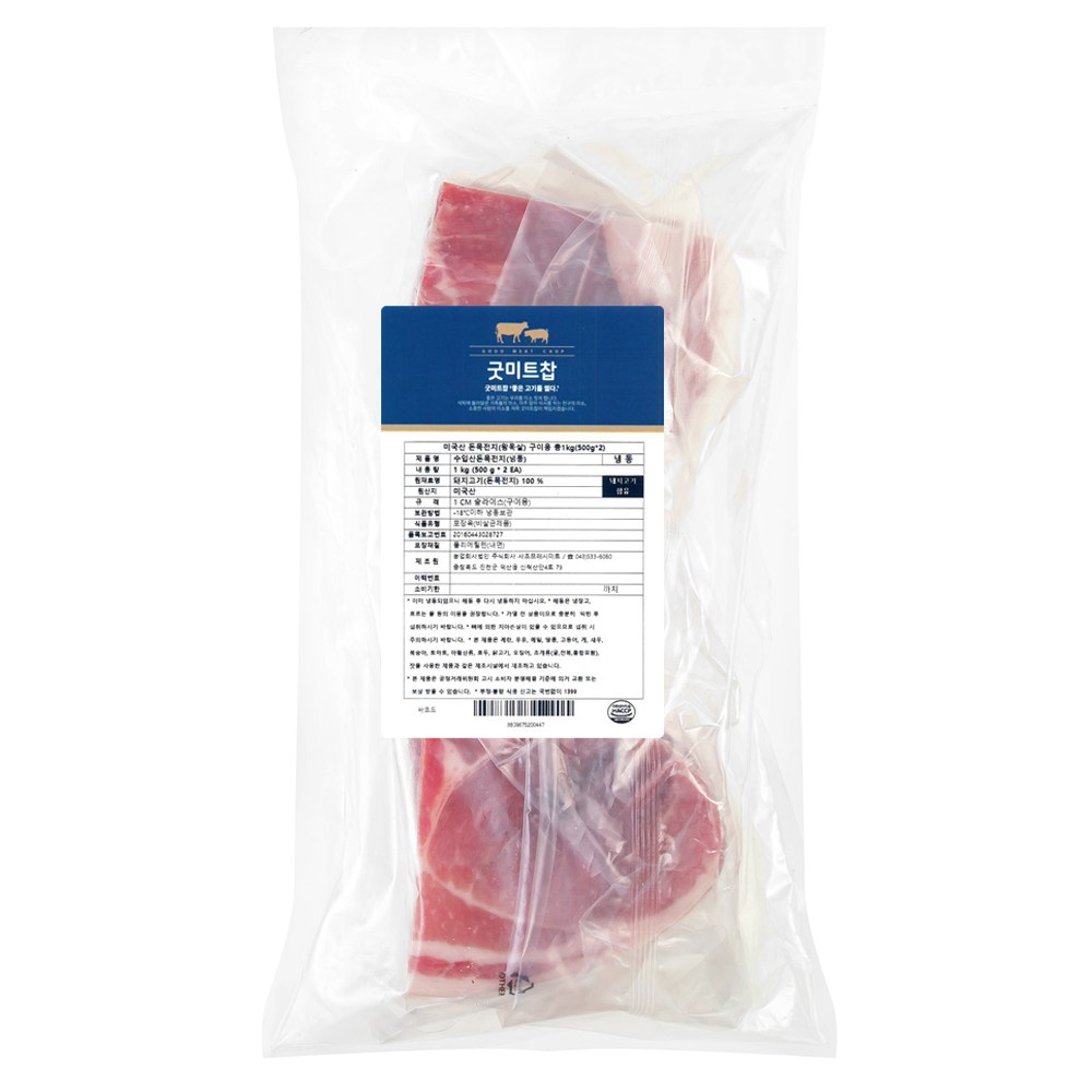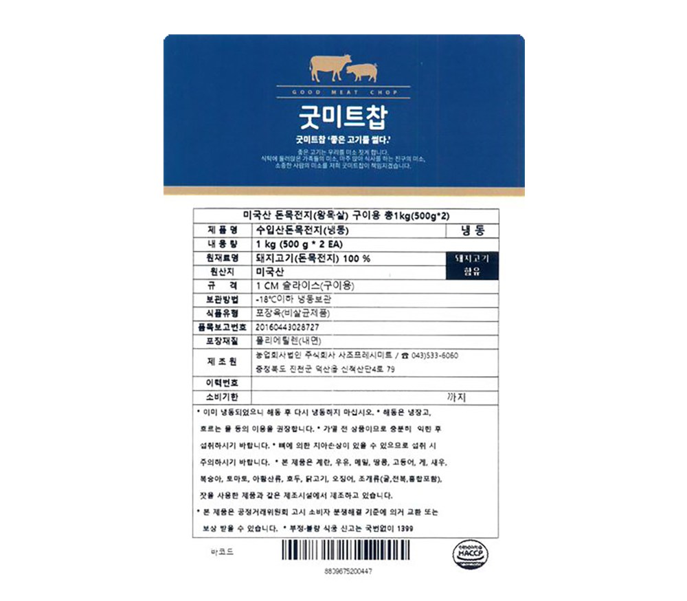 구이용으로 알맞게 정형된 돈목전지예요. 풍성한 육즙과 쫄깃한 육질이 일품이지요. 담백함과 고소함을 동시에 느낄 수 있을 거예요. 노릇노릇하게 구워 다채로운 쌈채소와 함께 드셔보세요.