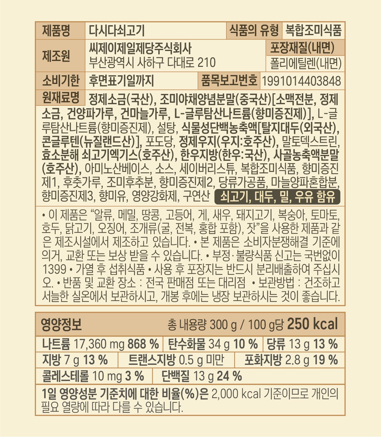 | 포장단위별 내용물의 용량(중량), 수량 | 300g x 5개 | 원재료명 및 함량 | 컨텐츠 참조 |