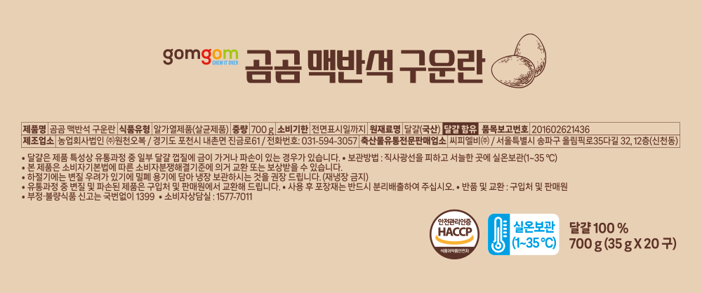 | 제품명 | 곰곰 맥반석 구운란 | 식품의 유형 | 컨텐츠 참조 |