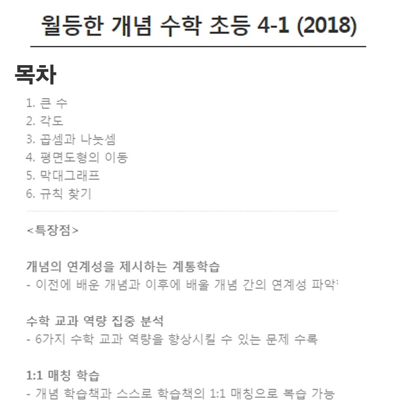 | 도서명 | [능률] 월등한 개념 수학 초등수학 4-1 (2018년) | 저자, 출판사 | NE능률 수학교육연구소,NE능률(능률교육) |