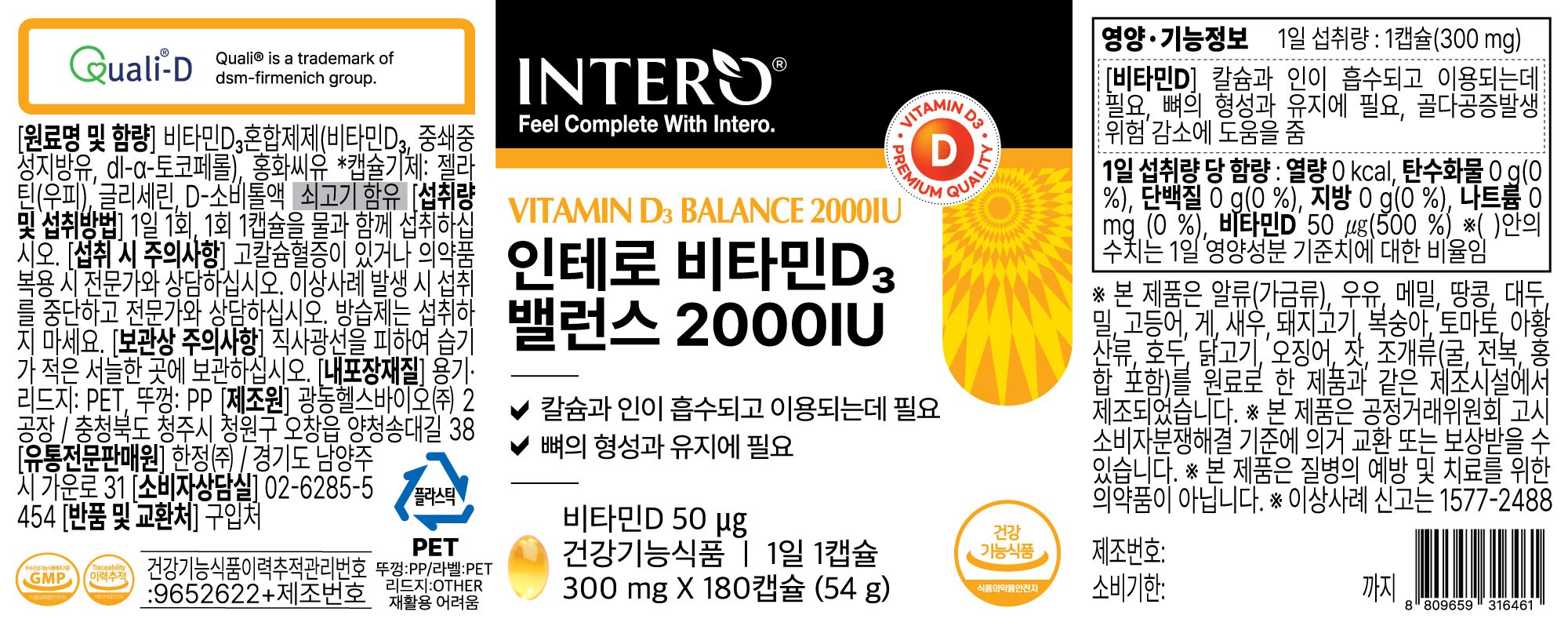 | 제품명 | 인테로 비타민D3 밸런스 2000IU | 제조업소의 명칭과 소재지 | 컨텐츠 참조 |