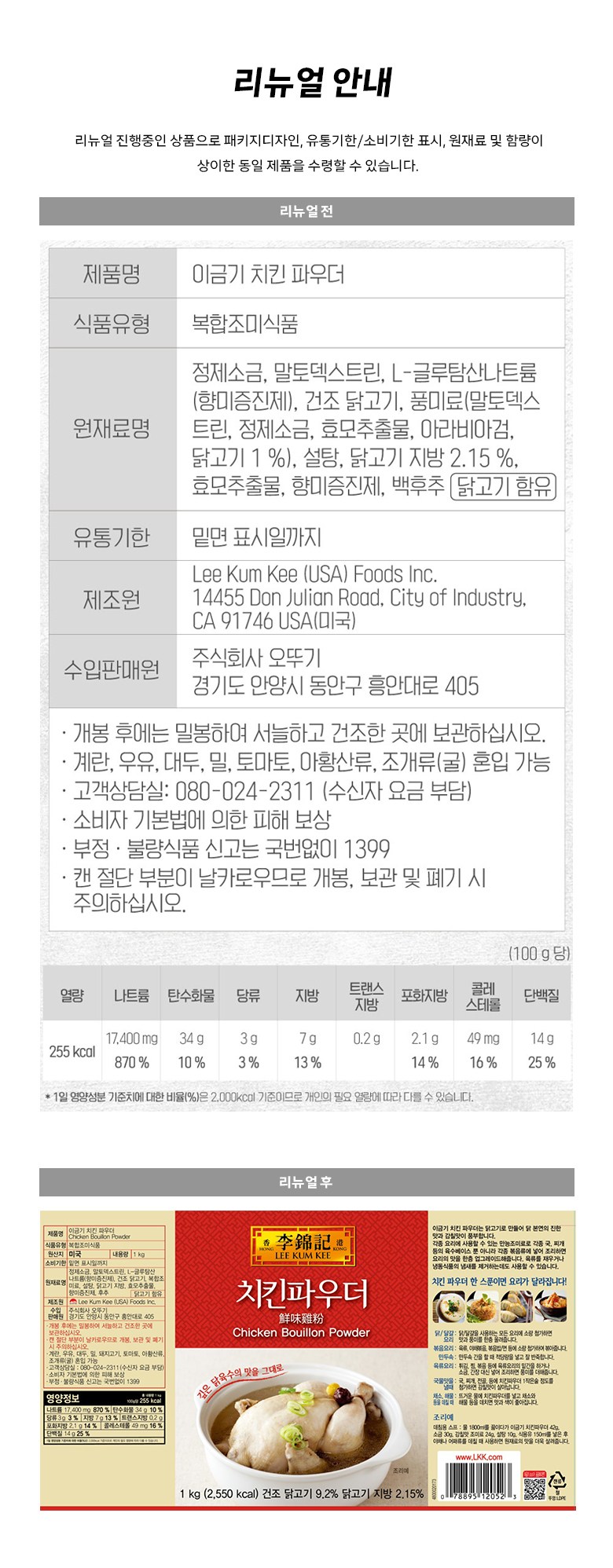 | 포장단위별 내용물의 용량(중량), 수량 | 1kg x 2개 | 원재료명 및 함량 | 컨텐츠 참조 |
