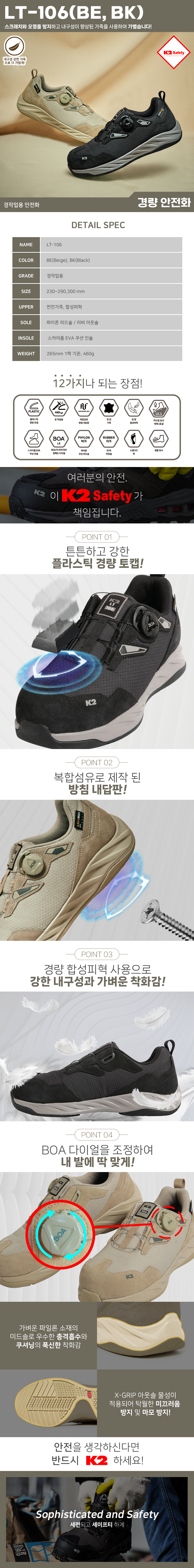 | 품명 및 모델명 | 케이투세이프티 경량 안전화 LT-106 | 인증/허가 사항 | 22-AV4CR-0234 |