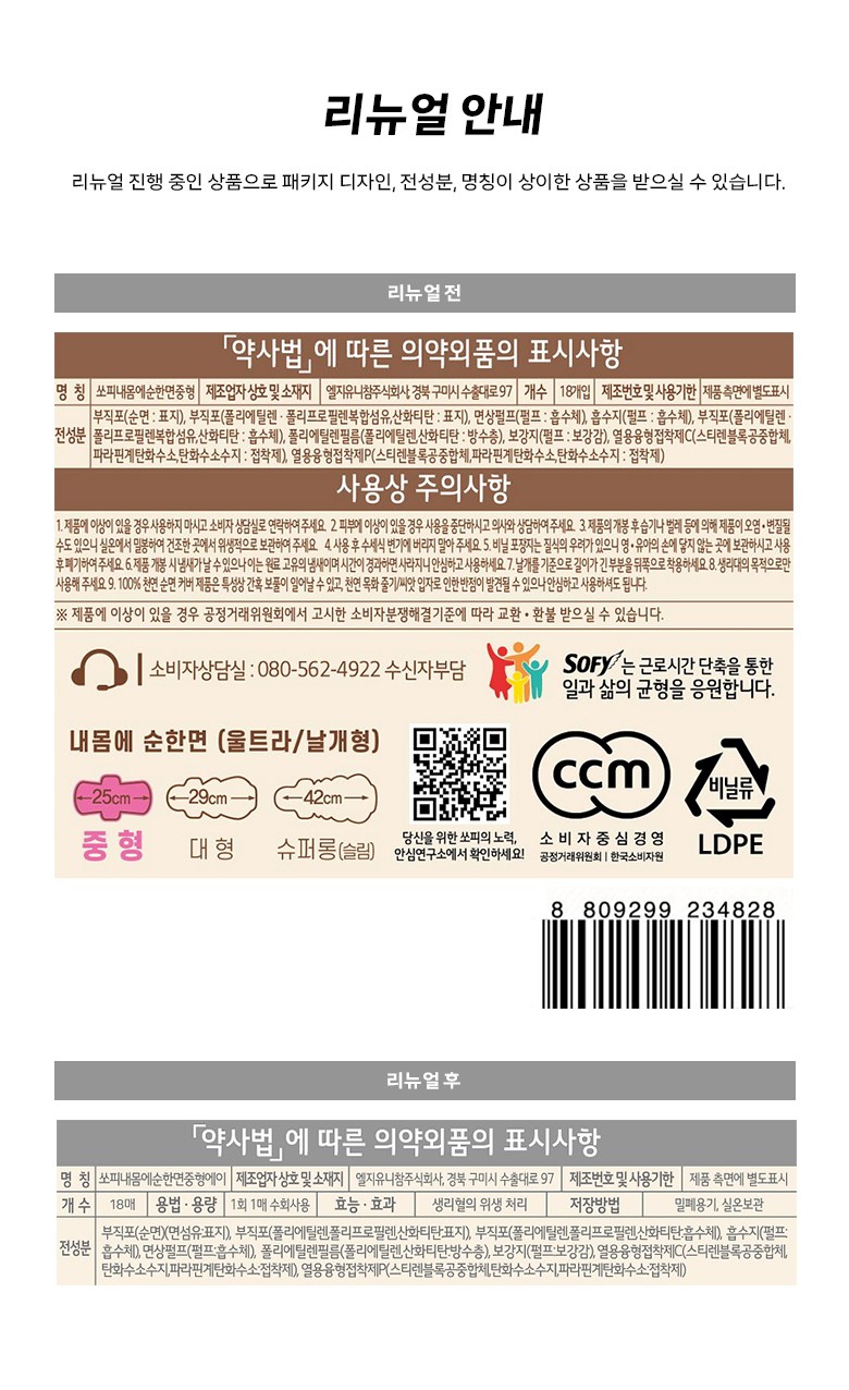 | 품명 및 모델명 | 쏘피내몸에순한중형에이 | 인증/허가 사항 | 의약외품 |