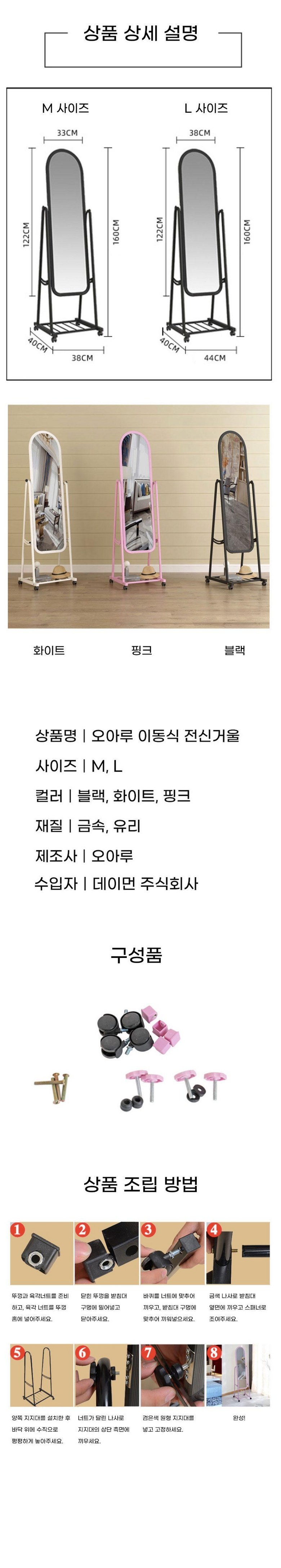 | 품명 및 모델명 | 오아루 이동식 전신거울 1600x440mm | 인증/허가 사항 | 해당 없음 |