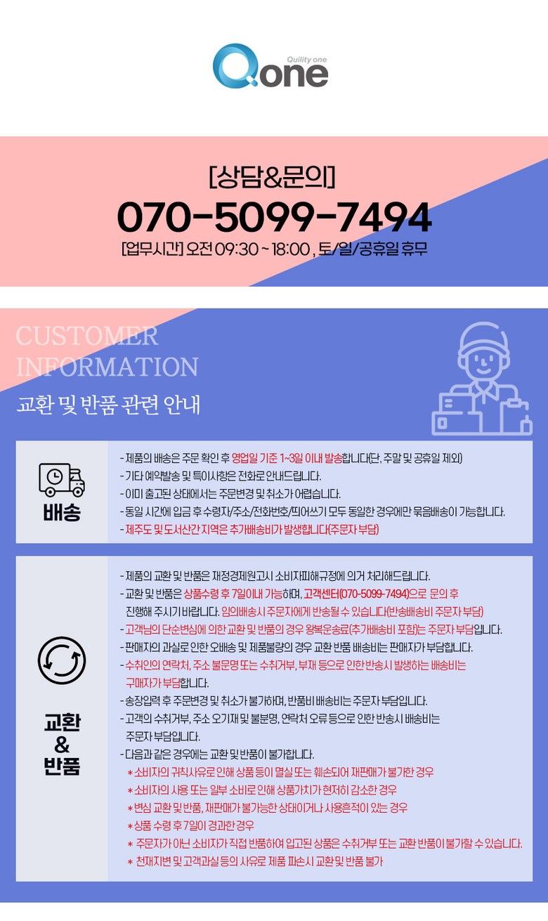 | 소비자상담 관련 전화번호 | (주)큐원 / 070-5099-7494 | ||