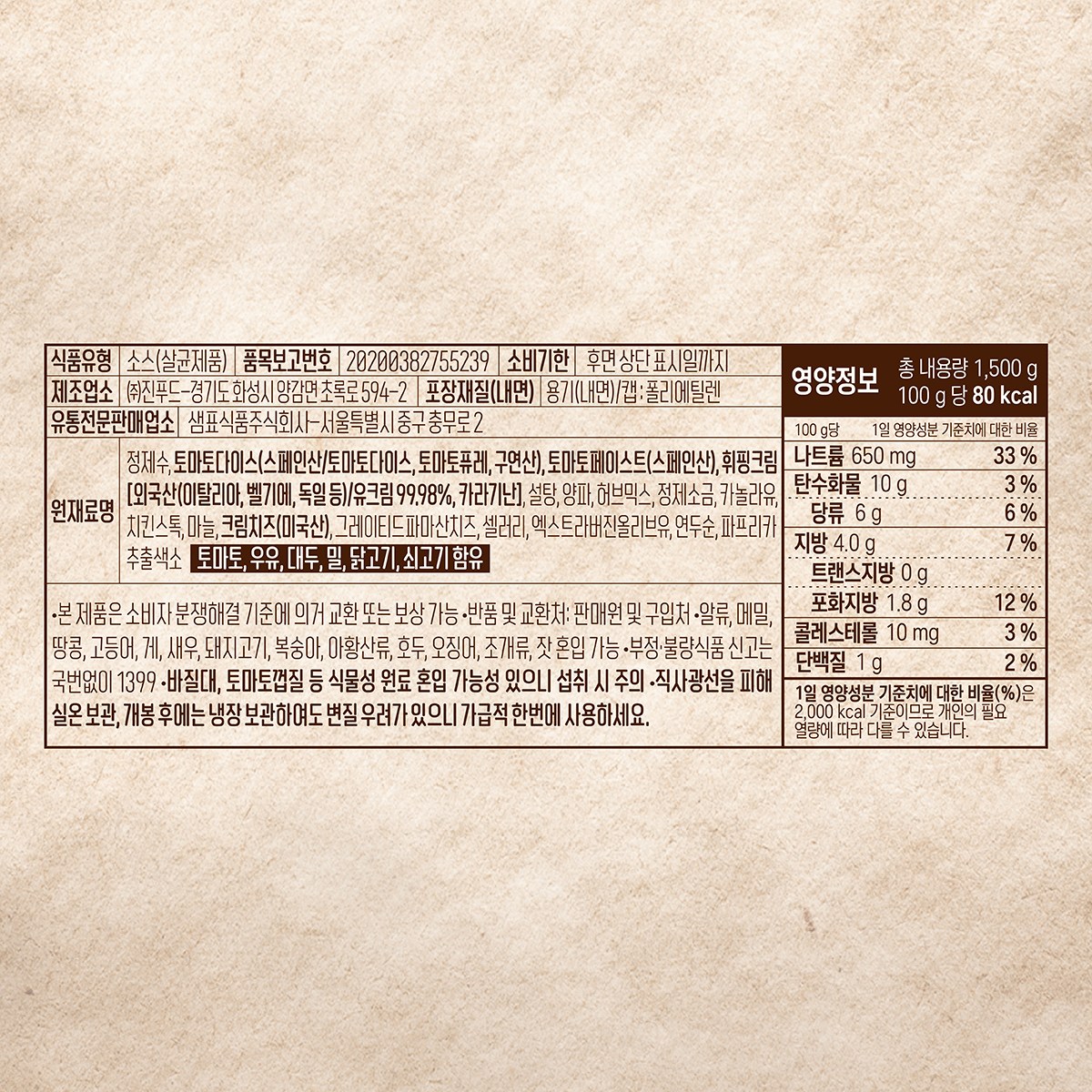| 제품명 | 폰타나 밀라노 크림치즈 로제 파스타소스 | 식품의 유형 | 컨텐츠참조 |