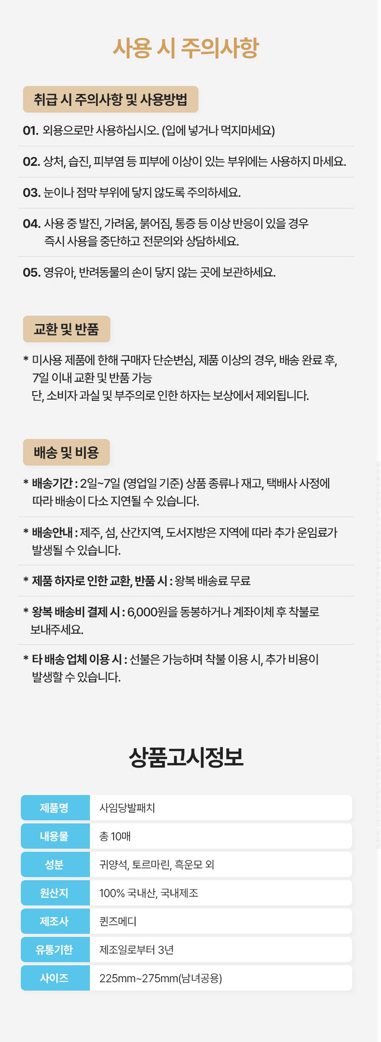 - ㆍ모니터 해상도의 차이로 인해 색상이나 이미지가 실제와 달라, 고객이 단순 변심으로 교환/반품을 무료로 요청하는 경우