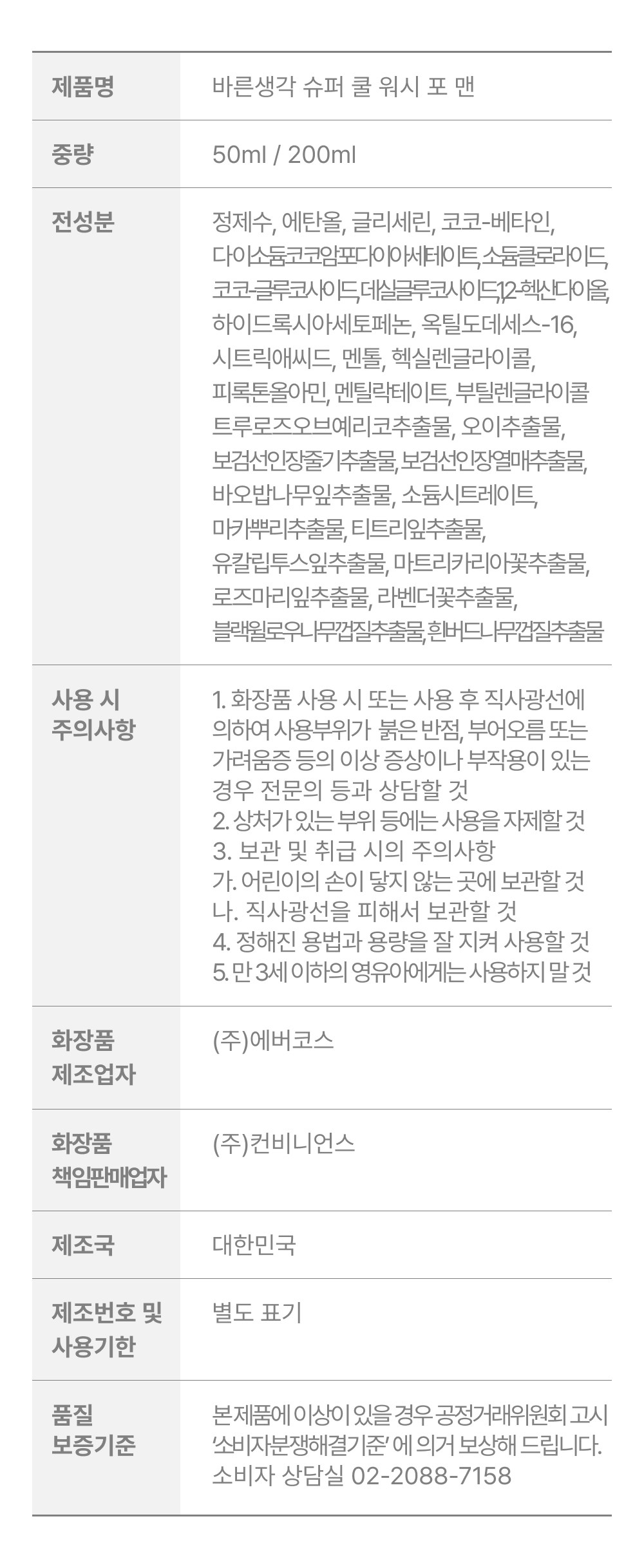 | 용량(중량) | 200ml | 제품 주요 사양 | 컨텐츠 참조 |