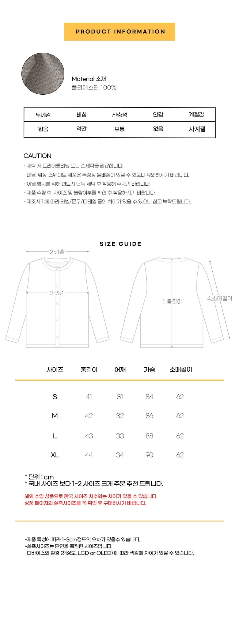 | 제조국 | 중국 | 세탁방법 및 취급시 주의사항 | 컨텐츠 참조 |