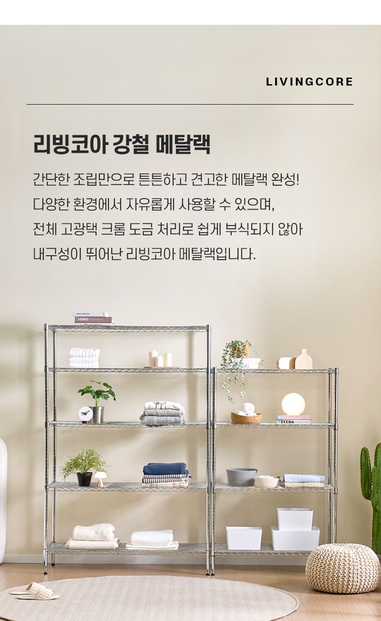 | 주요 소재 | 크롬도금스틸, 합성수지 | 제조자(수입자) | 업체 미제공/ 리빙코아 |