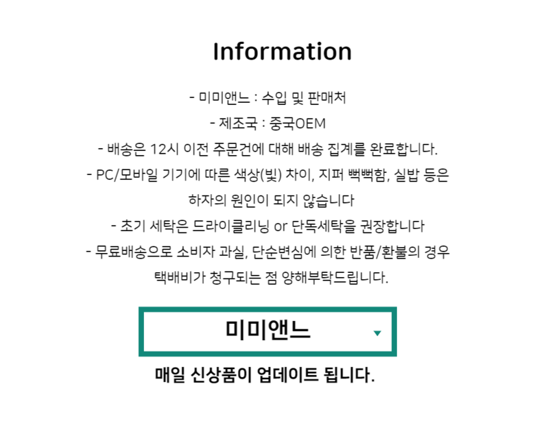 - ㆍ모니터 해상도의 차이로 인해 색상이나 이미지가 실제와 달라, 고객이 단순 변심으로 교환/반품을 무료로 요청하는 경우