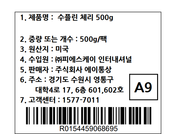 | 제조연월일, 소비기한 또는 품질유지기한 | 업데이트 예정 | 세부 품목군별 표시사항 | 농수산물:-유전자변형:해당없음-지리적표시사항:해당없음 |