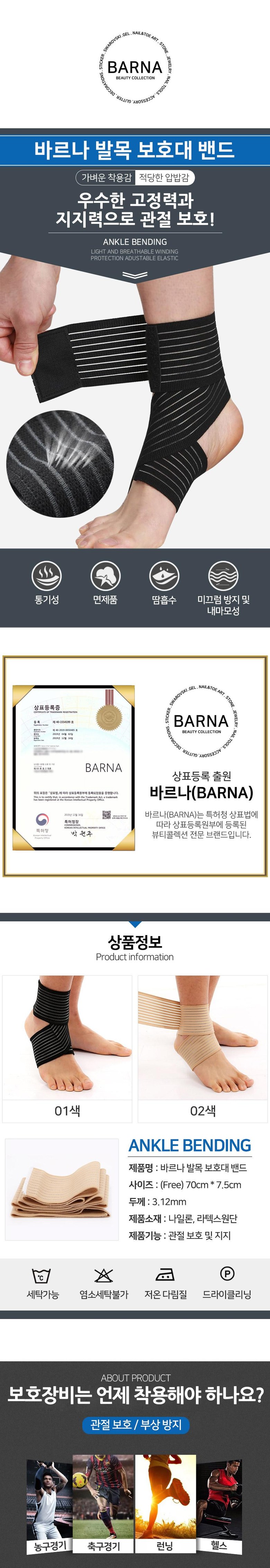 | 품명 및 모델명 | 바르나 풋케어 발목 압박 붕대 스포츠 밴드 | 인증/허가 사항 | 해당사항없음 |